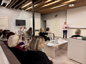 Teine päev kandis pealkirja „Tulevikuoskused – mida oskan homme?“ ja suunas pilgu tulevikku. Hannela ja õpetaja Mirjam rääkisid megatrendidest ja tulevikuoskustest, mis kujundavad haridusmaastikku laiemalt. Arutlesime, millised oskused aitavad õpetajal muutustega kohaneda. Svetlana modereeritud vestlusringis jagasid Erasmus+ õpirändurid oma kogemuslugusid, mida õpiti meie partnerite juures, mida soovitatakse kollegidele ja mis pakub õpirände puhul väljakutset.